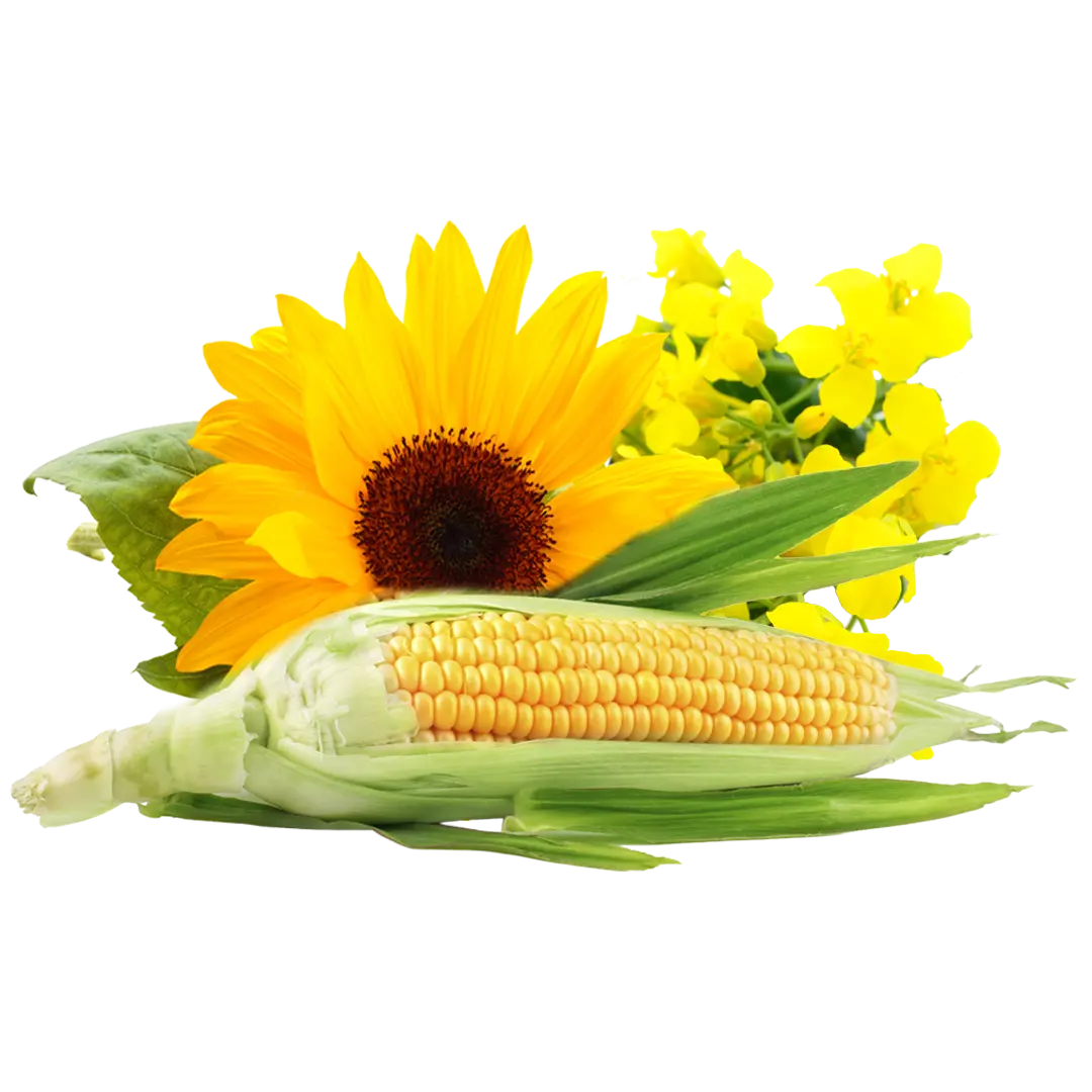 Mid-oleic sunflower oil and/or High oleic canola oil, Corn Oil.