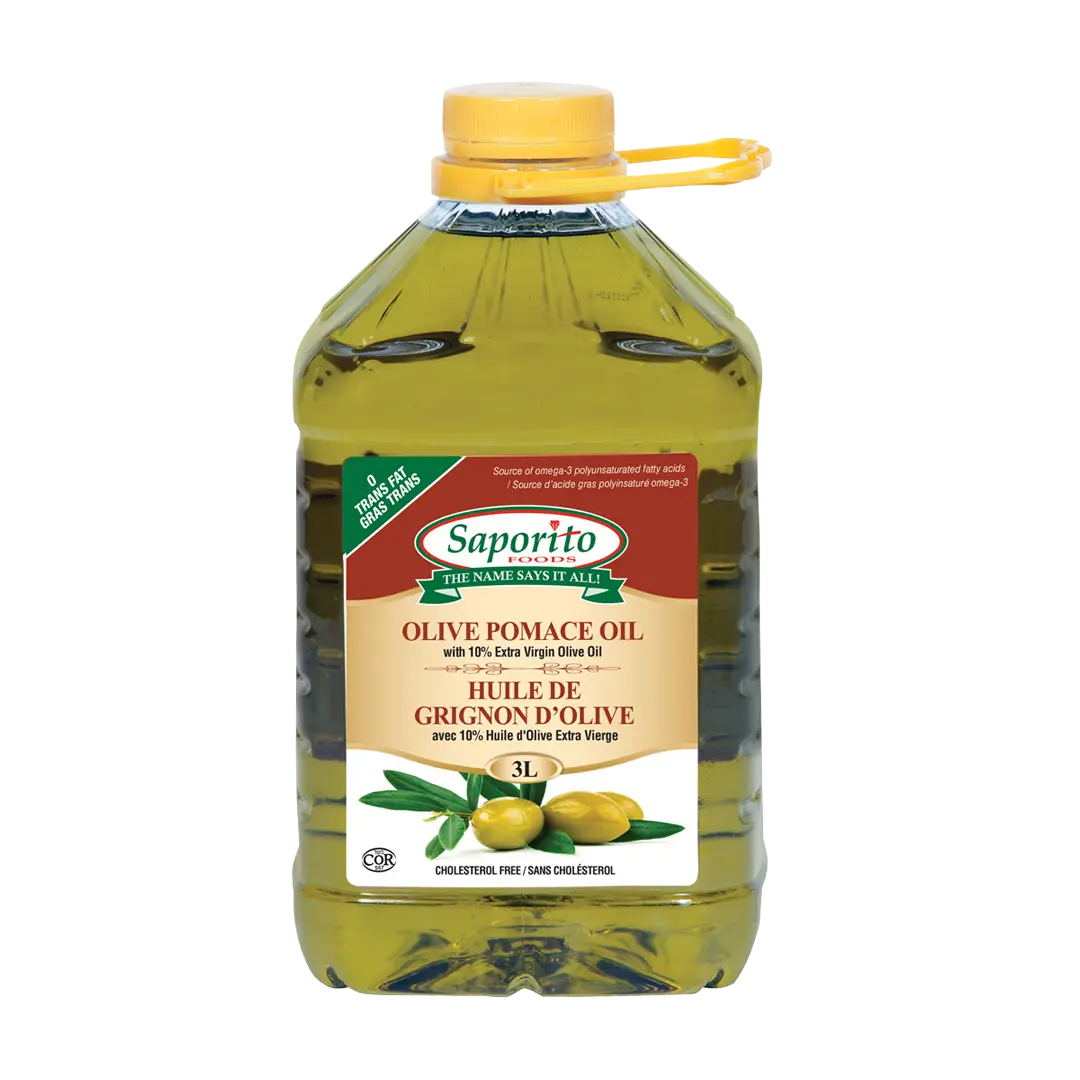 Saporito Foods Olive Pomace Oil is blended with 10% Extra Virgin Olive Oil, offering a perfect balance of flavour, performance, and value. Its light taste and high smoke point make it ideal for pan frying, baking, and marinades, while the addition of Extra Virgin Olive Oil enhances aroma and nutritional quality.