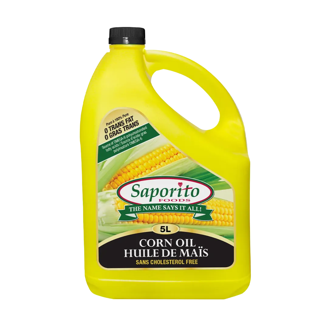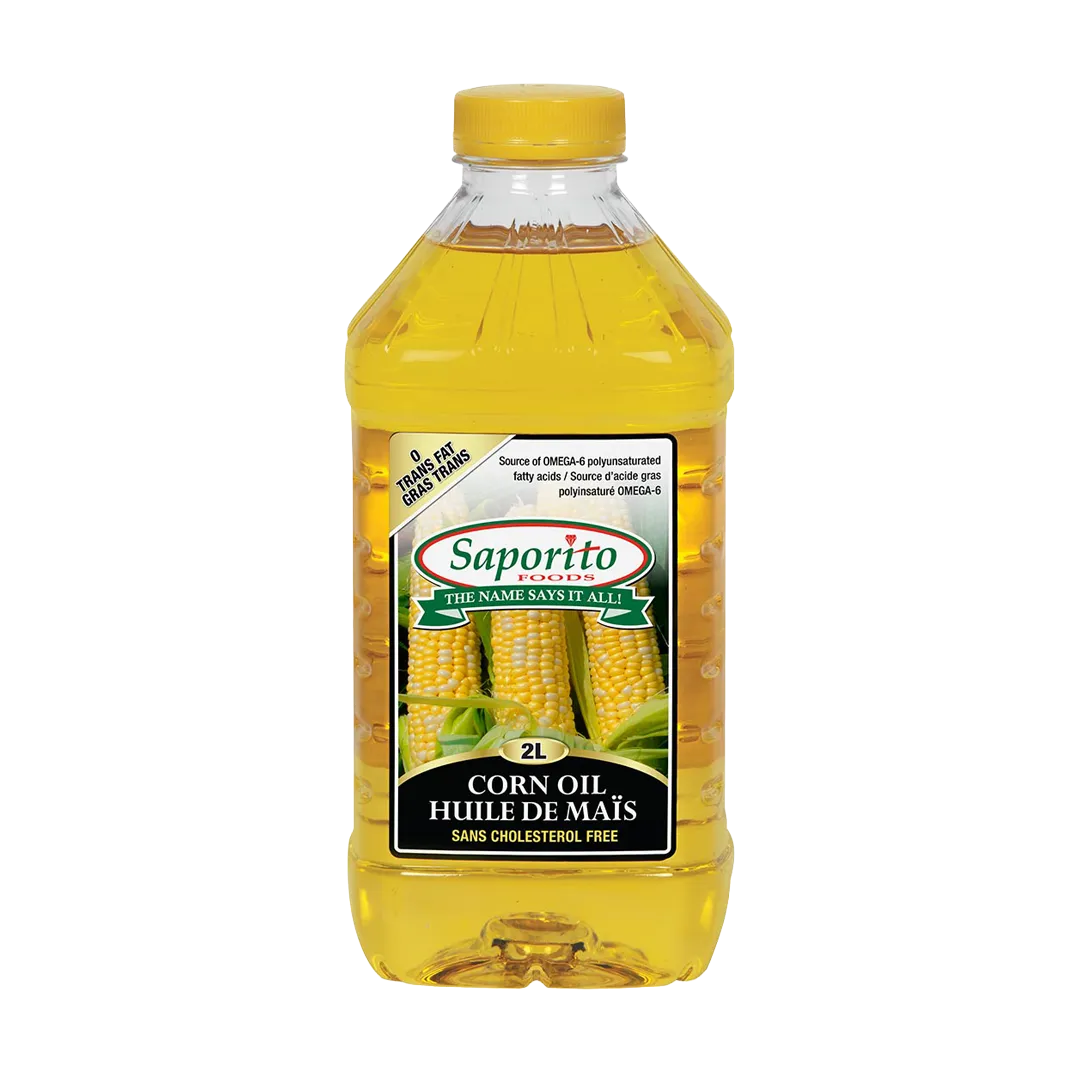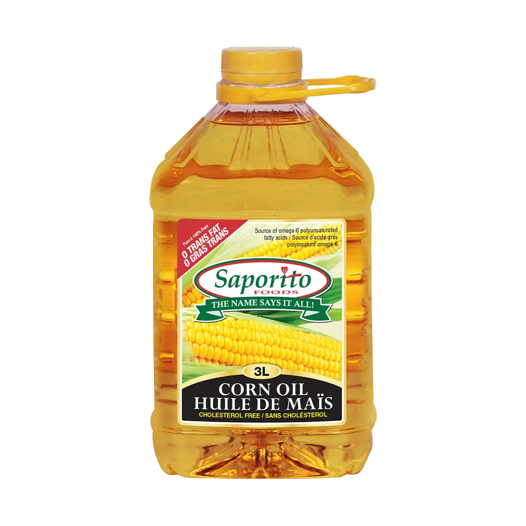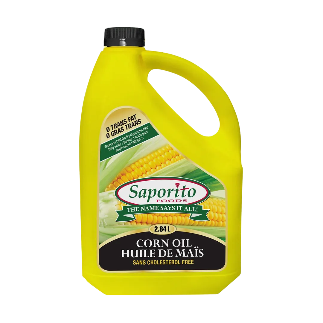 Saporito Foods Corn Oil is a PREMIUM QUALITY oil that is ideal for deep frying, pan frying, baking, seasonings, salad dressings, and wok cooking. Corn Oil has NO TRANS FATS, NO CHOLESTEROL, and is LOW in SATURATED FATS. A healthy diet low in saturated and trans fats may reduce the risk of heart disease. Corn Oil is also a source of OMEGA-6 polyunsaturated fatty acids.