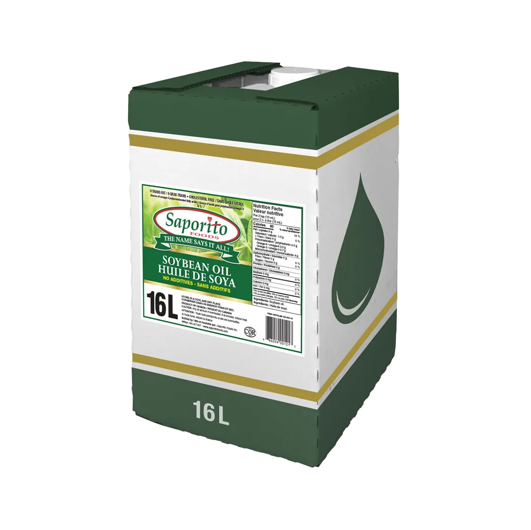 Saporito Foods™ Soybean Oil is a PREMIUM QUALITY oil that is ideal for deep frying, pan frying, baking, seasoning, salad dressings, and wok cooking. It contains no trans fats, no cholesterol, and is low in saturated fats. A healthy diet low in saturated and trans fats may reduce the risk of heart disease, making this oil a smart choice for both commercial and home kitchens.